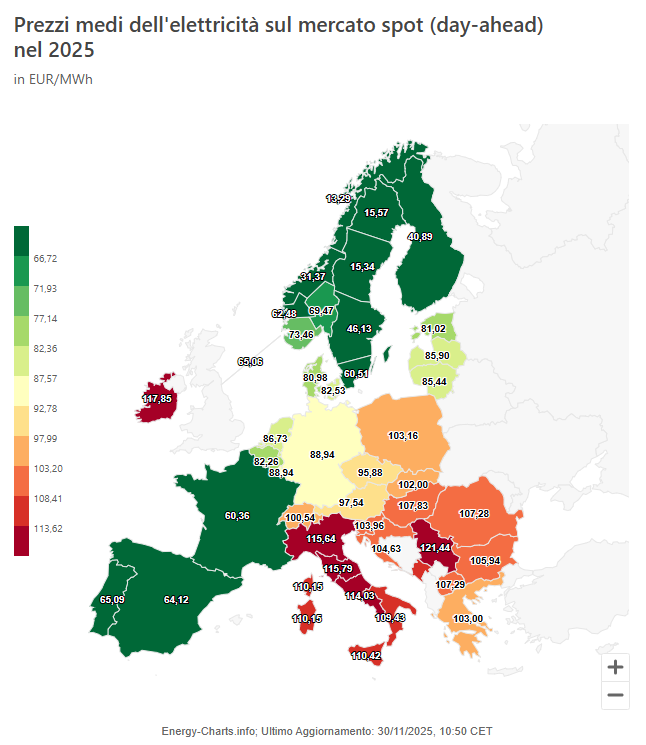 [1] «Energy-Charts». Consultato: 30 novembre 2025. [Online]. Disponibile su: https://energy-charts.info/charts/price_average_map/chart.htm?l=it&c=EU&interval=year