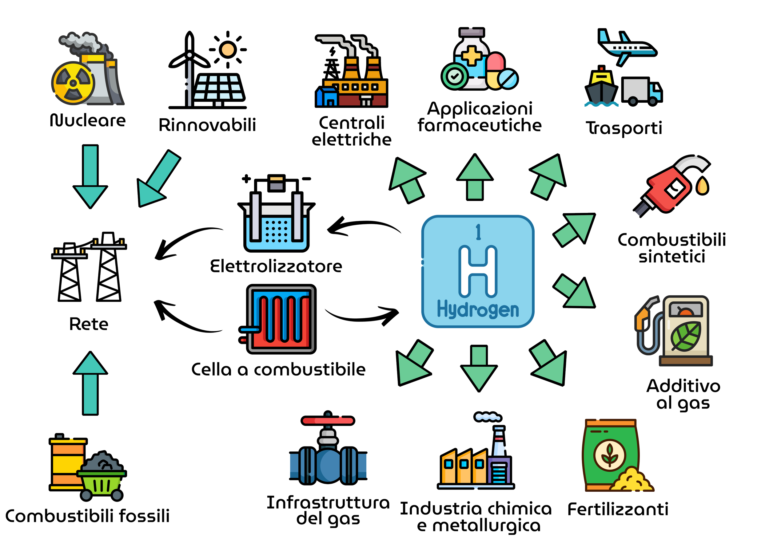 Figura 1 - Schema dei metodi di produzione e impiego dell'idrogeno.