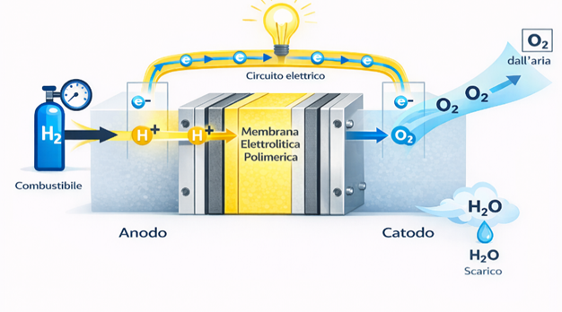 Figura 4 - Principio di funzionamento della cella a combustibile