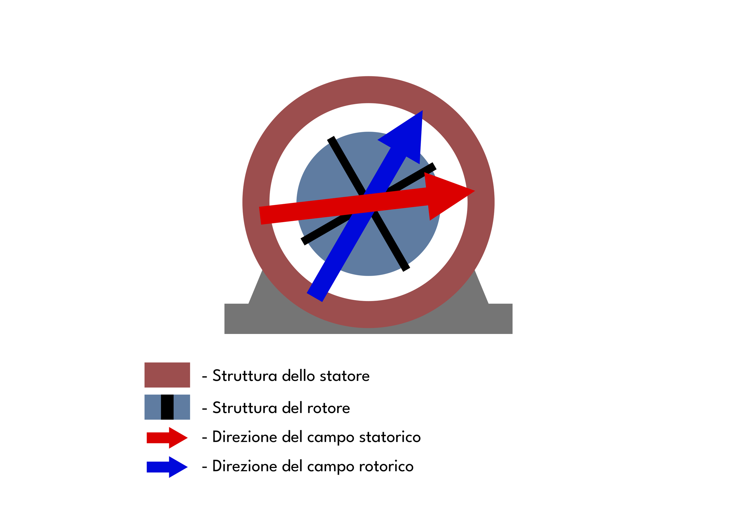 In un motore, affinché il rotore giri, è necessario che ci sia un campo magnetico rotante a statore che lo trascini. Nella giusta configurazione, le correnti alternate generate dai conduttori fissi nello statore sono in grado di generare direttamente il campo magnetico rotante.